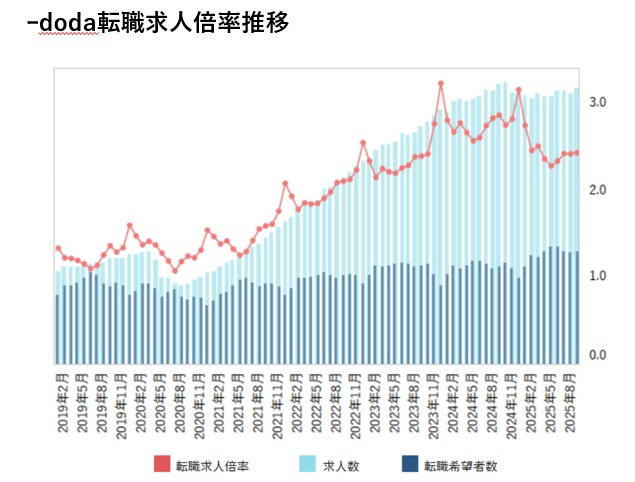 出典)doda転職求人倍率レポート:https://doda.jp/guide/kyujin_bairitsu/
