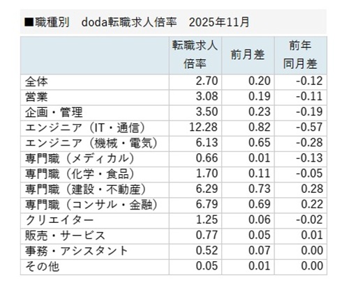 転職求人倍率:2.70倍(前月差:+0.20ポイント・前年同月差:-0.12ポイント)